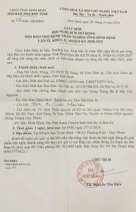 Thư mời tham dự Hội nghị BCH mở rộng Hội Bảo trợ bệnh nhân nghèo Tỉnh Bình Định lần thứ IX, khoá II, nhiệm kỳ 2020 -2025