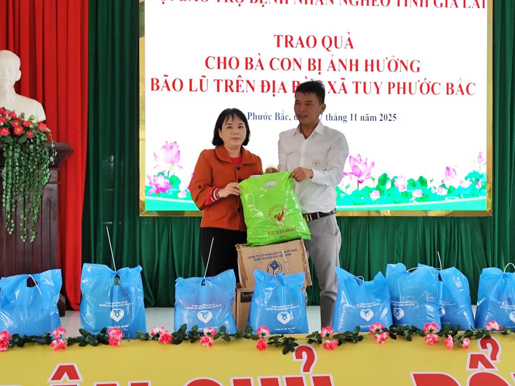 Chiều nay, Chi hội Hoài An đã đến thăm hỏi, động viên và tặng 100 suất quà cho người dân bị ảnh hưởng bởi bão lũ của xã Tuy Phước Bắc, mỗi phần quà gồm 200.000 đ tiền mặt, 1 bao gạo, 1 thùng mì tôm và 1 lốc nước (trị giá hơn 400.000 đ). Phần tiền do vợ chồng cầu thủ Hồ Tấn Tài – Phạm Thị Hiếu tài trợ, phần quà do các bà con và các mạnh thường quân chung tay ủng hộ.